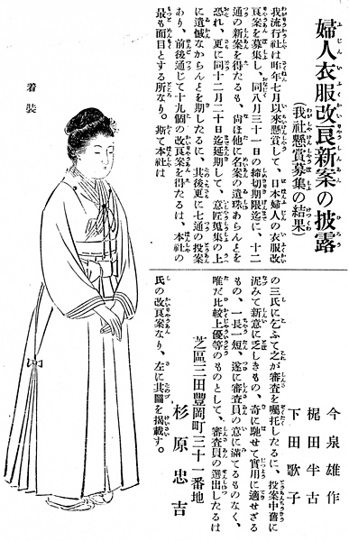 | タイトル | 婦人衣服改良新案の披露(我社懸賞募集の結果) |