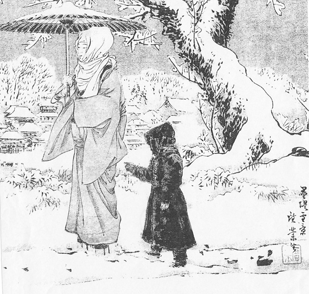 | キーワード | 雪の日;御高祖頭巾;おこそ頭巾;子ども外套;フード付き外套;番傘 |