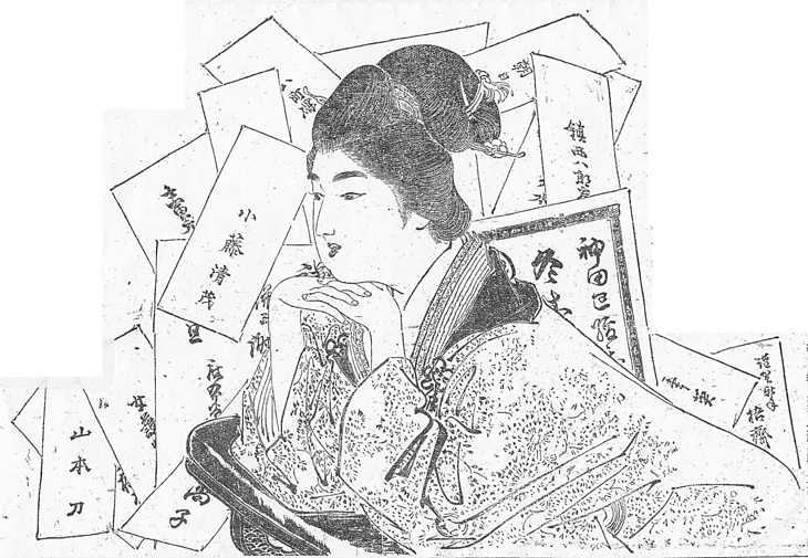| キーワード | 高島田;小襟;房飾り;肘(ひじ)を突く |