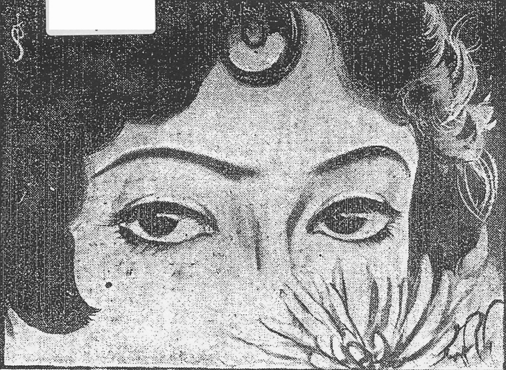 | 説明 | 自分のこれはと思っている男性には、親の決めた許婚がいた。そんな時代遅れの縁を、この際はっきりと、自分の目の前で断ち切ってほしいと要求している令嬢。眉毛や眼の周りの化粧を西洋風にすることは、この時代ではもうだれもがしている。しかし眼窩が浅く、しかも眼の色の濃い日本人の顔では、そのためにどうしてもきつい印象になってしまう。年輩の婦人などが、あのお嬢さんの顔は怖いようだ、と言うわけのひとつはそれ。この令嬢は断髪風で、念入りにウエーブをつけ、額にはカールを巻いている。ただし本当に断髪の女性はごく少なかった。(大丸 弘) |