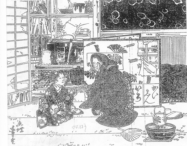 | 説明 | 〈遡及資料〉明治の御代と文中にあるけれど、貧家の有様は維新もなにもない。枕屏風のかげで伏せっている病気の夫は車夫をしているというから、正確にいえば人力車が現れた1869(明治2)年,1870(明治3)年以後のことになる。今年九歳になる娘は、父親の薬代どころかその日の食べるのにも事欠いている家の様子をおもんぱかり、まとまった金を手に入れてふたりの親を救うために、近所の内藤新宿の廓に身を売ることを母親に申し出ている。歌川豊宣の絵は人物の顔を除けばリアリズムで、九尺二間の長屋の室内を細かく描写している。左手の、火吹き竹や消し壺まで描き込まれた竈(カマド)のある空間は土間の台所。出入りはここだけしかできない。右手に娘の手を握り、左の手で襦袢の袖を引き出して涙を拭いている母親の髪は馬の尾結び。(大丸 弘) |