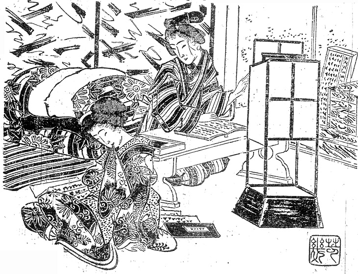 | キーワード | 裕福;文机(ふづくえ);行灯;黒襟;布団 |