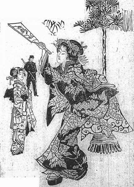 | 説明 | 〈遡及資料〉和歌山県名草郡野川村の豪農の娘と、通りがかりの二等巡査の若者との情話の発端で、1874(明治7)年の正月二日のこととなっている。東京府はすでに1871(明治4)年に府内警備のため邏卒(ラソツ)三千名を採用し(→年表〈事件〉1871年10月 「東京府下に邏卒三千人」太政官沙 第553号 1871年10月23日)、武器として警棒を持たせている(→年表〈事件〉1872年8月 「東京府、邏卒のほかに番人を置く」太政官付録 第17号 1872年8月23日)。ただし、その邏卒の名称を巡査と改めたのは1873(明治6)年だが(→年表〈事件〉1873年2月 太田臨一郎『日本服制史』1989年)、それはあくまでも東京警視庁のこと。警棒は約三尺あって、巡査は三尺棒などと陰口された。だから屋根に乗っかった追い羽根の羽根を取ることもできたろう。(大丸 弘) |