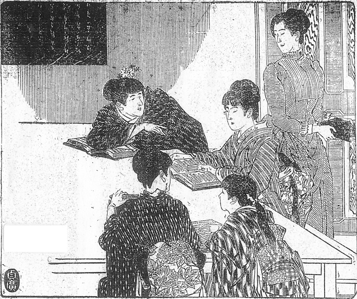 | 身装画像コード | D7jog:[女学生] D2hi:[束髪(庇髪など、後期平型の)] D3ob:[帯の締め方;帯の位置] D6se:[洋装;西洋化;西洋観;ハイカラ;西洋かぶれ;開化ぶり;西洋憧憬] |