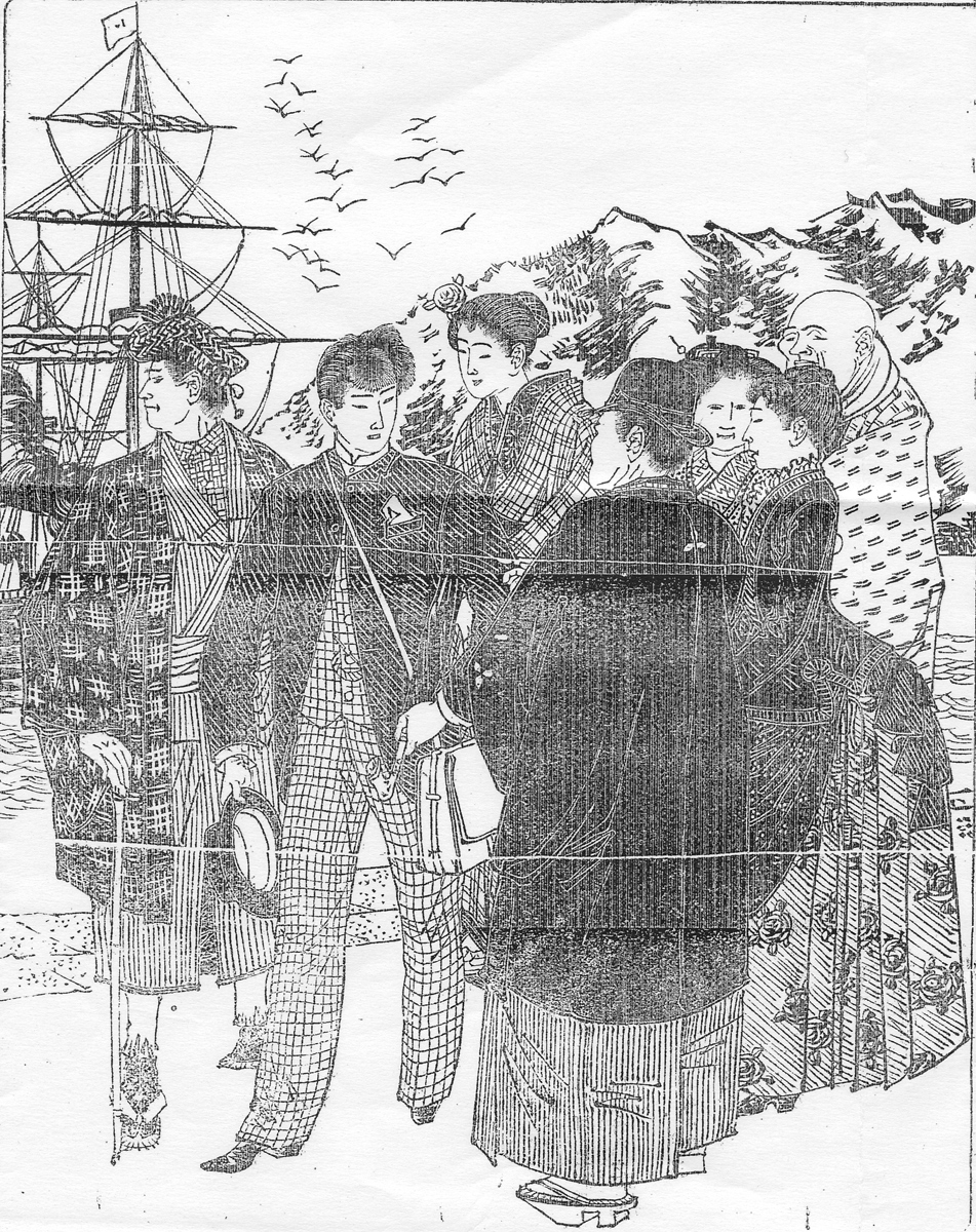 | 身装画像コード | K600:[大中の港湾施設;メリケン波止場] D6se:[洋装;西洋化;西洋観;ハイカラ;西洋かぶれ;開化ぶり;西洋憧憬] Wbo:[かぶり物一般;帽子] Vhao:[羽織] Wge:[下駄;クロッグ] Wka:[鞄] Wzo:[草履;草鞋] Wtu:[杖;ステッキ;松葉杖] D1ka:[髪飾り(櫛,簪,リボン)] |