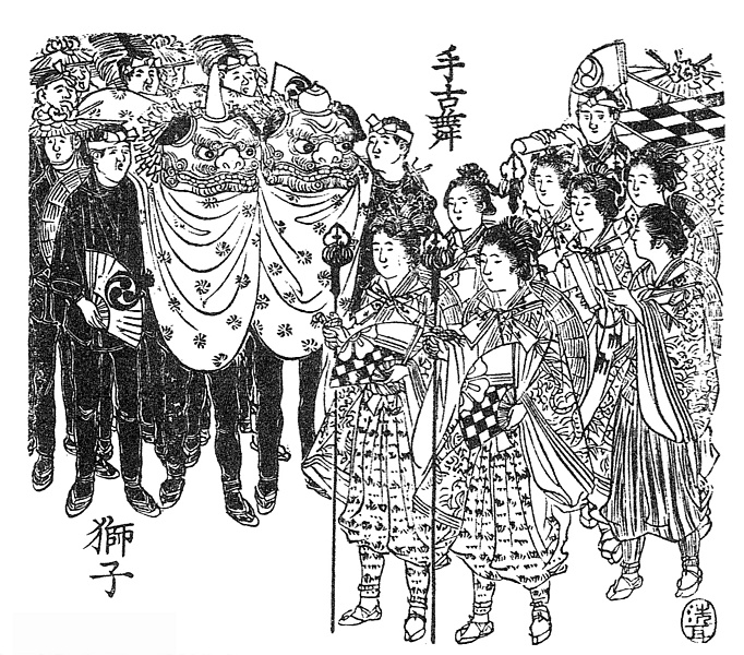 | キーワード | 芸妓;手古舞姿;獅子舞;鳶(とび) |