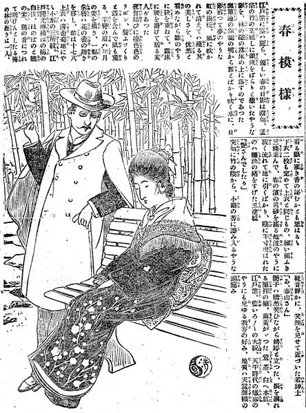 | キーワード | ショール;三枚襲;裾の袘(ふき);中折帽子;中折れ帽子;鼻眼鏡;サングラス;[インバネス;トンビ;鳶(とんび);二重回し;二重廻し;二重外套;二重マント];ベンチ;竹林 |