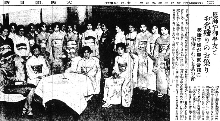 | タイトル | 恩師や御学友とお名残りのお集り:勢津子姫が東京會舘に招待されてお茶の会 |