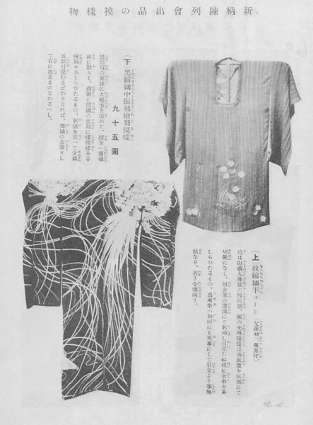 | タイトル | 新柄陳列会出品の模様物:紋縮緬半コート/黒縮緬中振袖絵羽模様 |