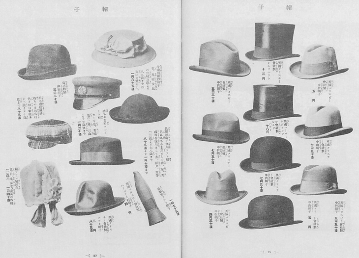 | キーワード | シルクハット;中折帽子;中折れ帽子;中山帽;コンノート型;羅紗帽子;両面帽子;ソフト帽子;ハーバード型 |