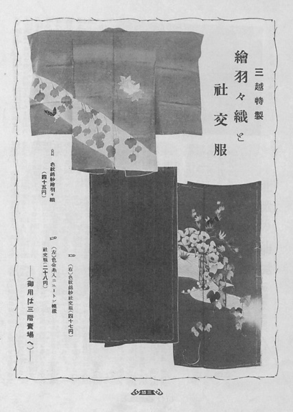 | タイトル | 三越特製 絵羽々織と社交服 |