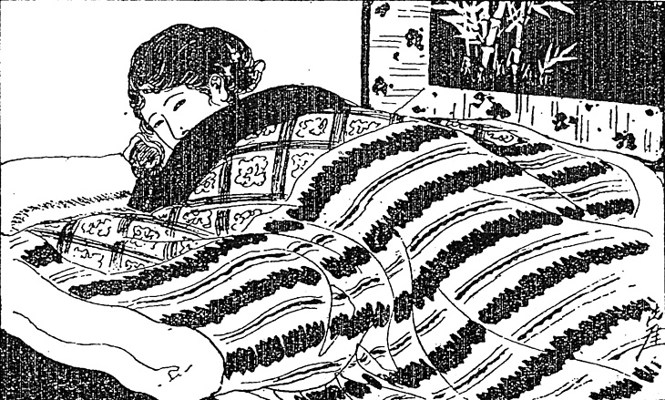 | 身装画像コード | Jhu:[ふとん・ベッドに横たわる;寝道具] Vyo:[夜着;夜具;掻巻] D2so:[束髪(前期縦型の)] |
