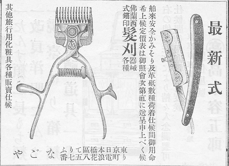 | タイトル | 最新式舶来安全かみそり/仏蘭西式錨印髪刈 |