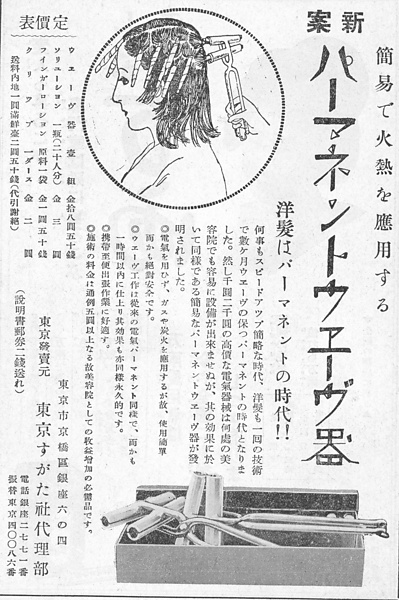 | タイトル | 簡易で火熱を応用する新案パーマネントウエーヴ器:洋髪はパーマネントの時代!! |