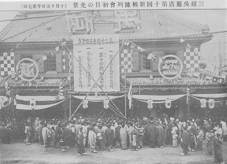 タイトル 三越呉服店第十回新柄陳列会初日の光景(十月十五日午前七時)
