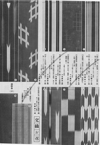 | キーワード | 交織御召;微塵縞;井桁絣;矢絣 |