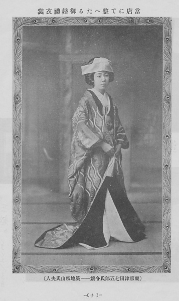 | タイトル | 当店にて整へたる御婚礼衣装:東京津田七五郎氏令嬢 築地籾山氏夫人 |