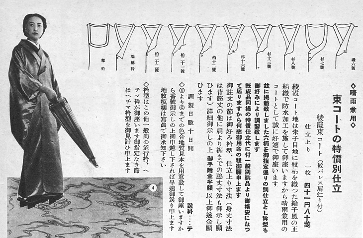 | タイトル | 晴雨兼用東コートの特価別仕立 |