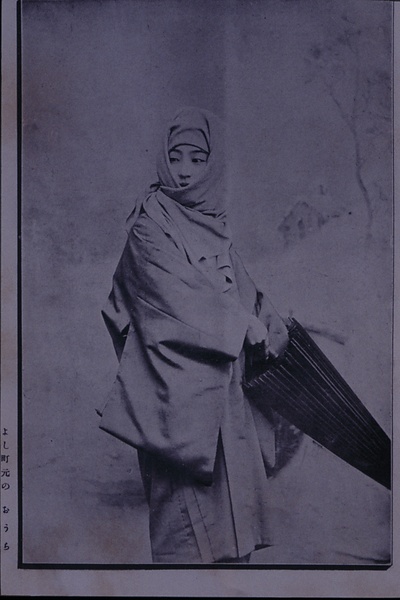 | 身装画像コード | D5am:[雨や雪など、気象条件による服装] Wzu:[頭巾;覆面] Vko:[コート(女性和装外套)] Wkas:[傘] |