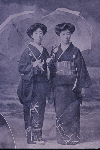 | キーワード | 上流階級の妻;庇髪;白襟黒紋付き;裾模様;日傘 |