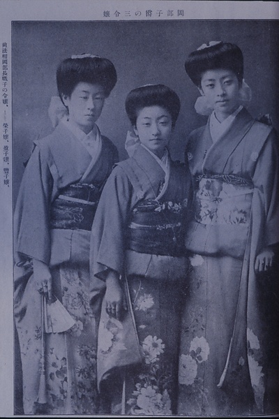 | 説明 | 前法相・岡部長職(おかべながもと)(1855-1925)氏の令嬢、栄子嬢、盈子嬢、豊子嬢。 |