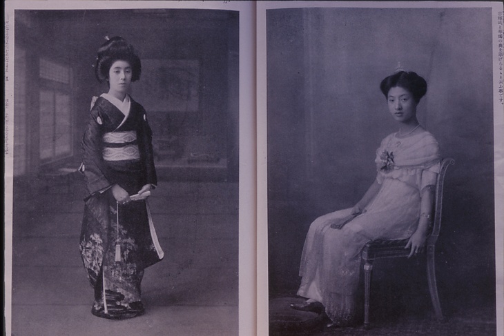| キーワード | 帰国子女;紋付き;裾模様;女児洋服;和装と洋装の対比;椅子 |