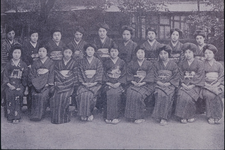 | 身装画像コード | Jkn:[記念撮影一般] Jds:[同窓会] D005:[20~30歳代の女性;年増] D2hi:[束髪(庇髪など、後期平型の)] Vhan:[半襟] Wzo:[草履;草鞋] D80:[姿勢;ポーズ(特異な姿勢・ポーズ・格好一般)] |