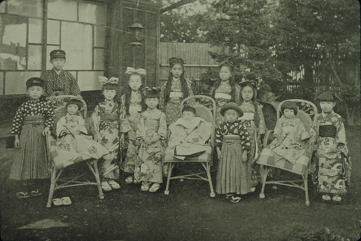 | キーワード | 上流階級の子ども;下げ髪;大きなリボン;紺飛白のきもの |