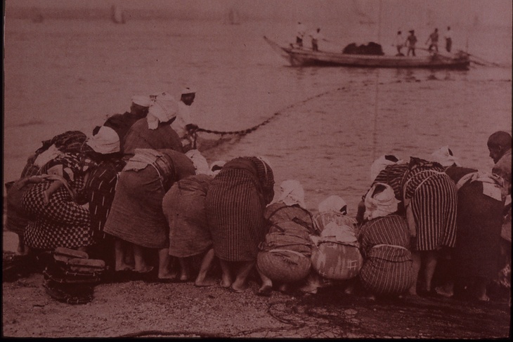 キーワード 浜仕事;地曳網;地引網;漁師の妻;姉さん被り;姉さんかぶり;姐さん被り;姐さんかぶり;後ろ姿;背面