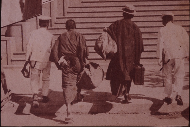 | キーワード | 大荷物を持つ;革かばん;無帽の男性;後ろ姿;背面;階段 |