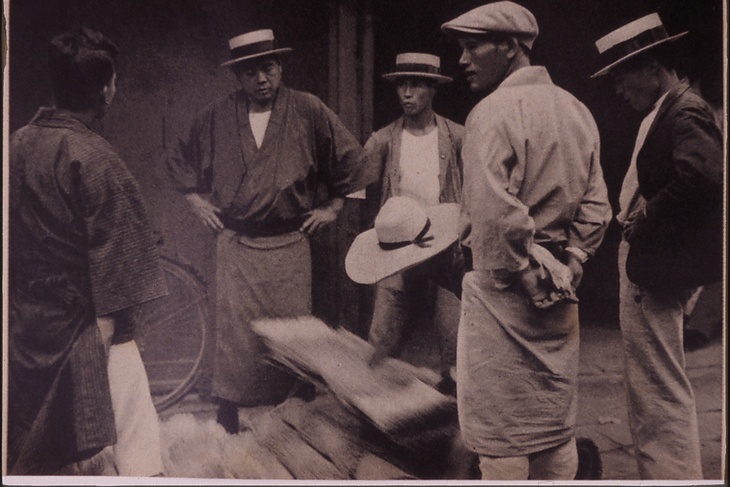| キーワード | 仲買人;カンカン帽;鳥打帽子;鳥打ち帽子;麦藁帽子;腰に手を当てる |