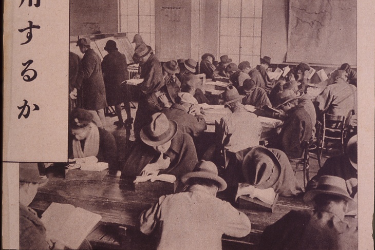 | キーワード | 図書館の利用者;読書;中折帽子;中折れ帽子;鳥打帽子;鳥打ち帽子;机;椅子 |