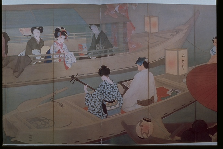 キーワード 浮瑠璃船;浄瑠璃語り;手ぬぐいかぶり;うなじ;三味線を弾く
