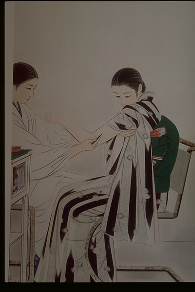 | キーワード | 診察室;女医;白衣;竪縞のきもの;腕まくり |