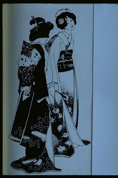 キーワード 洋髪と日本髪の対比;総柄のきもの;裾模様;竪矢の字;立て矢結び;曳き裾;後ろ姿;背面;側面