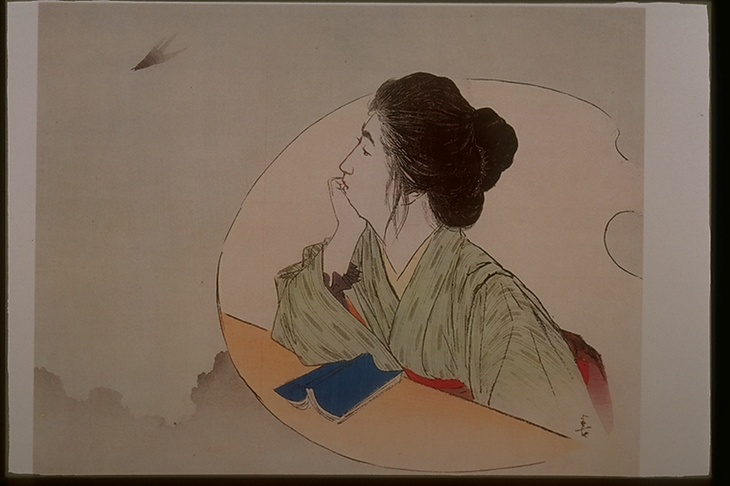 | キーワード | 袖口;頬杖を突く;物思い;本を伏せる |