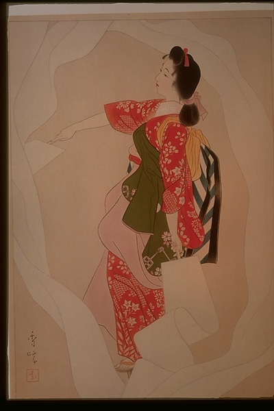 | 説明 | 歌舞伎舞踊、長唄の演目『晒女』より、「布ざらし」の場面を描いたもの。 |