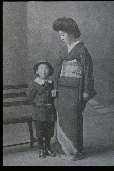 | キーワード | 母と子;上流階級の妻;白襟黒紋付き;裾模様;男児洋服 |