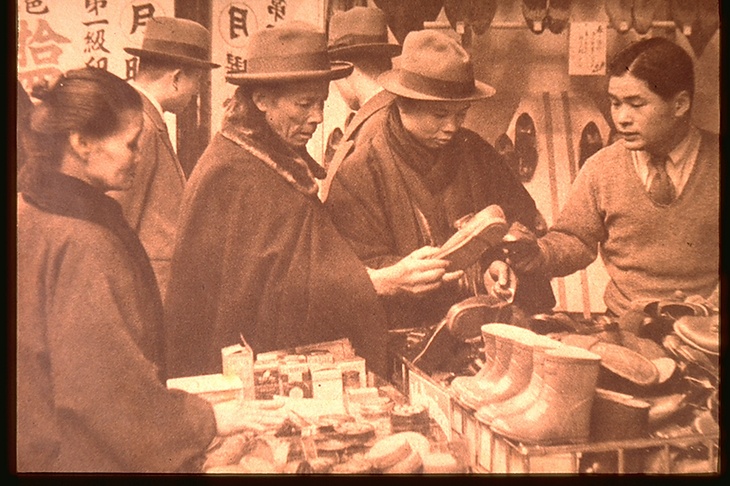 | キーワード | お上りさん;中折帽子;中折れ帽子;[インバネス;トンビ;鳶(とんび);二重回し;二重廻し;二重外套;二重マント];買い物;履物店 |