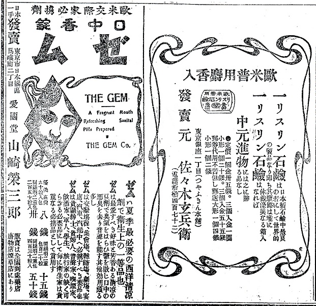 | タイトル | 欧米普用麝香入リスリン石鹸/口中香錠ゼム |