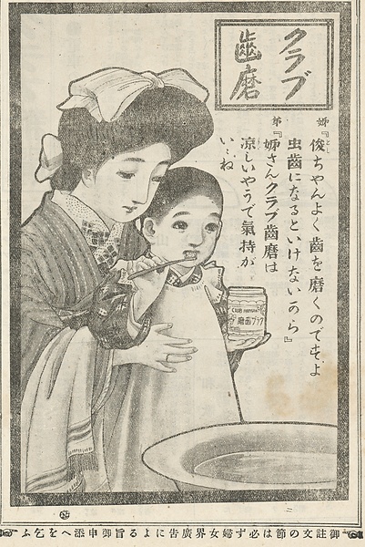 | 身装画像コード | D011:[男の幼児(だいたい就学以前)] Wmae:[前掛;エプロン;割烹着] D003:[少女(ほぼ女学生の年頃(12~15,16歳))] D2hi:[束髪(庇髪など、後期平型の)] D1ka:[髪飾り(櫛,簪,リボン)] K90:[新聞雑誌の紙面・広告] |
