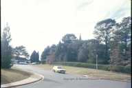 道路の向うの丘の上の塔がST.JOHNS THE BAPTIST教会 [ST.JOHNS THE BAPTIST教会=洗礼のヨハネ教会]