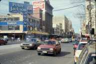 MELBOURNEのSWANSTON ST. 向うに見えるのはST.PAUL寺院(?) [MELBOURNE=メルボルン SWANSTON ST.=スワンストン通 ST.PAUL寺院=セント・ポール寺院]