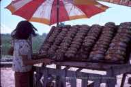タイ国、アジア・ハイウェイ沿い 街道ぞいの干物店 PARIKIU(カマス)と塩
