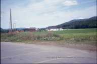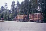 NES、村の前を材木運送のトラックが走る