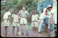 キリマンジャロの登山口にて(左から今西錦司、谷口穣、村上進)(N.H.)