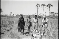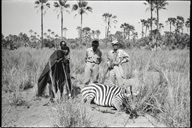シマウマを前にした桑原武夫と富田浩造(N.H.)