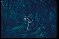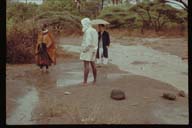 雨の中を基地にやってきたダトーガの女と話す梅棹忠夫(N.H.)