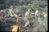 登山中に休けい(左から梅棹忠夫、今西錦司、谷口穣、小泉隆三、端信行)(N.H.)