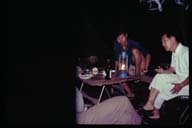 石油ランプの元で語り合う富川盛道、梅棹忠夫(N.H.)
